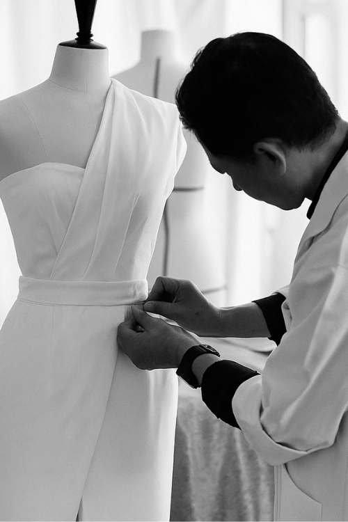 We value our one-on-one time with our clients as we explore the design process, which includes fabric selections, vision, silhouettes, and body type.