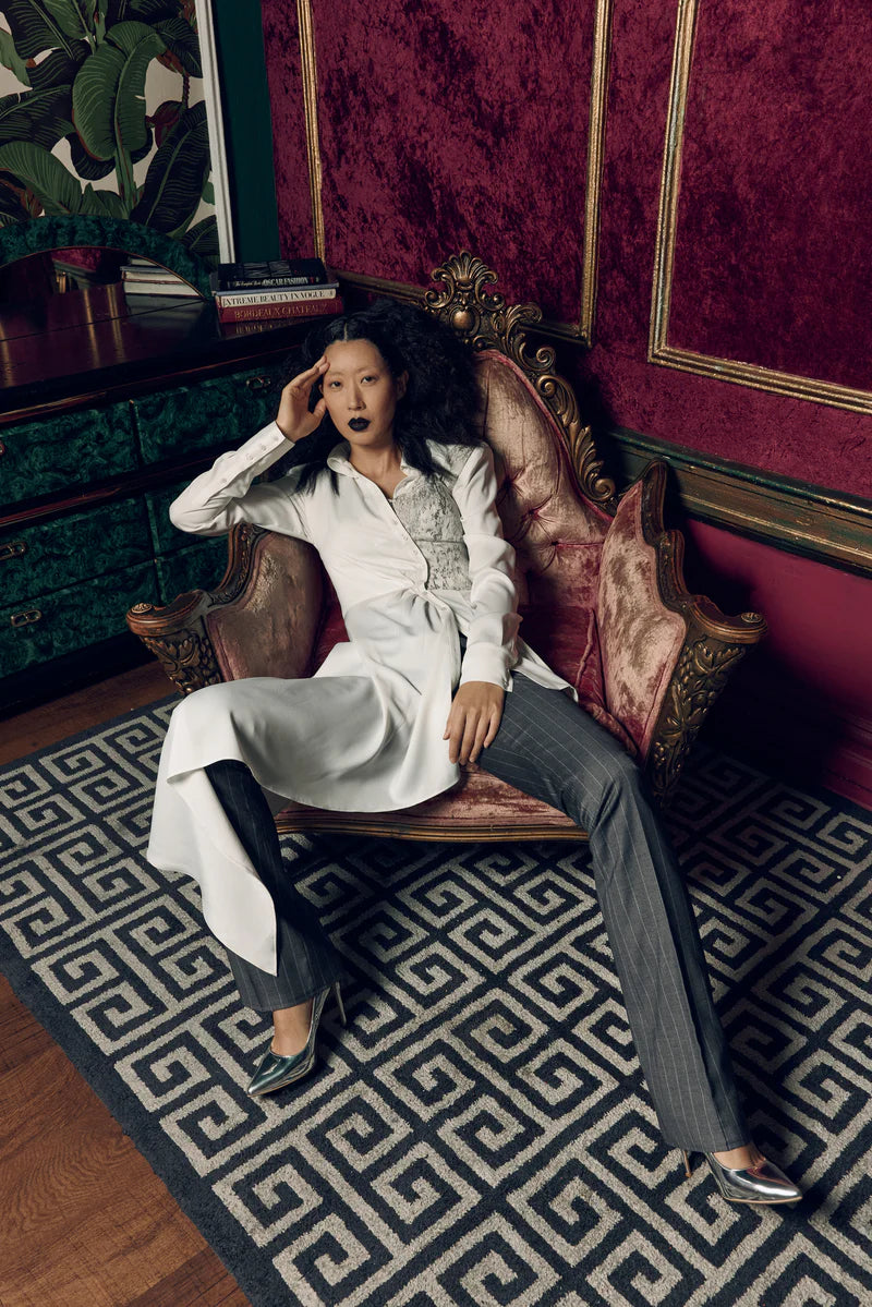 Charcoal Pinstripe Asymmetric Corset Blazer