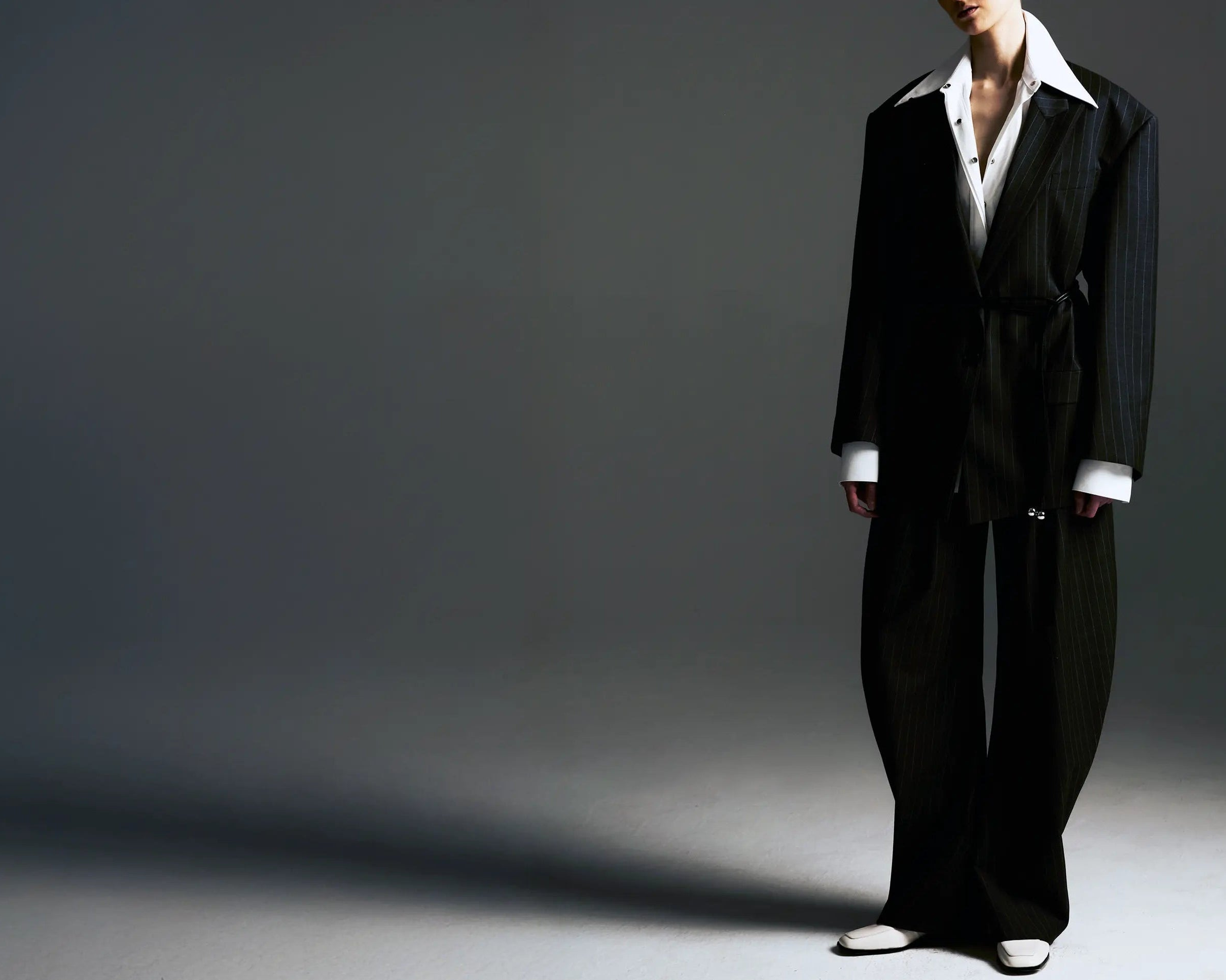 Charcoal Pinstripe Asymmetric Corset Blazer