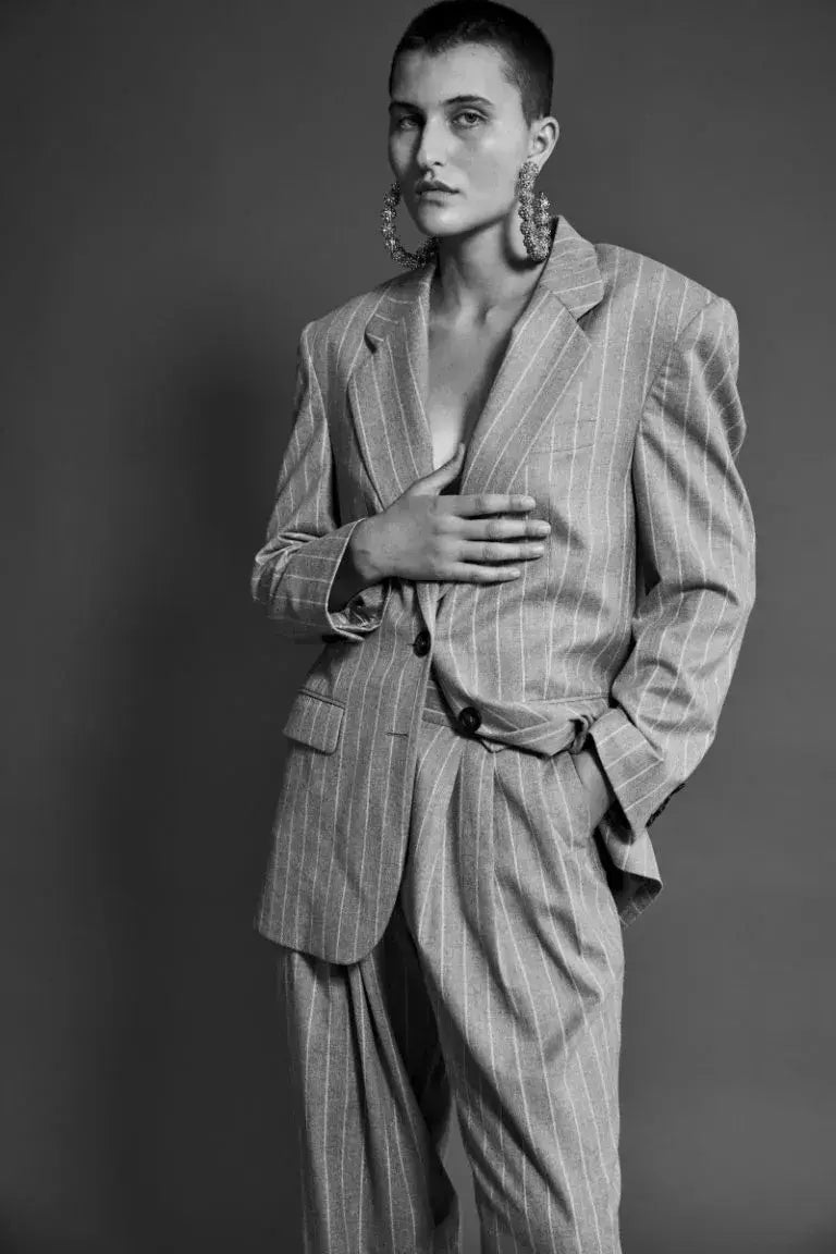 - Custom Femme Suits: Elegant silhouettes with strengthened shoulders and tapered pant legs.
