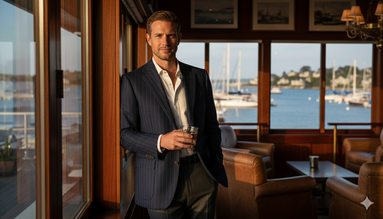The Ambassador – Men’s Navy Pinstripe Wool Blazer