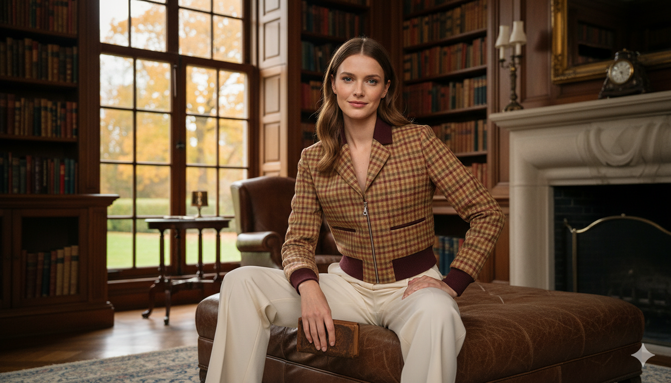The Alba Camel Bomber Jacket | Custom Plaid Hybrid Blazer