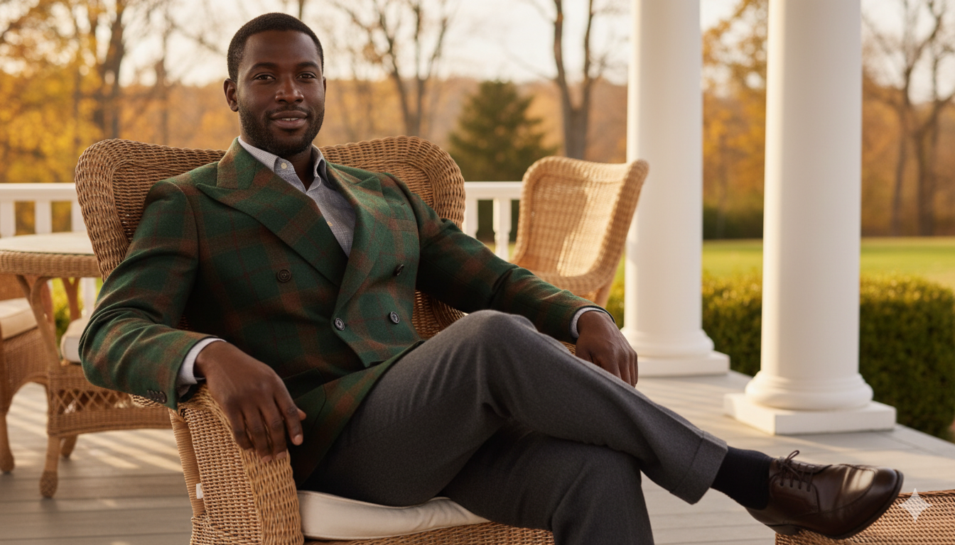 The Foglie Forest Green Sport Coat | Custom Double-Breasted Plaid
